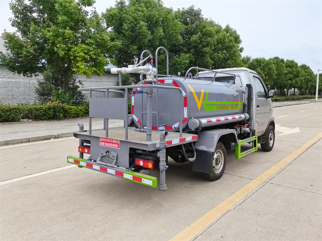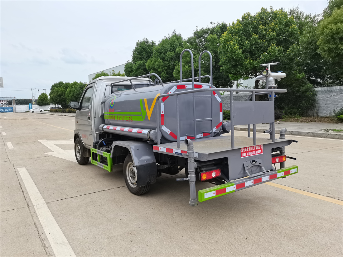 灑水車前裝有鴨形噴嘴或圓頭沖嘴,后面裝有圓柱開灑水噴嘴或蓮蓬頭噴嘴,后部有一工作平臺,裝配有水炮。后部還可裝8個噴嘴(選裝)。