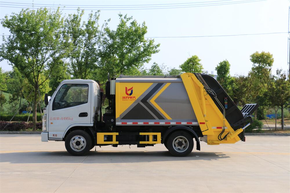 上裝配置:垃圾箱容積:4方,新款平面弧形廂體,廂體材料為武鋼優質碳鋼,PLC一鍵操作**,手電一體操作模式,兩側雙電控,帶駕駛室內操作,底板支撐加強,雙向壓縮,開放式易清潔污水箱。壓縮式垃圾車采用機電液一體化技術,借助機、電、液聯合自動**系統、電腦**、手動操作系統,通過填裝器和推鏟等專用裝置,實現垃圾倒入、壓碎或壓扁、強力裝填,把垃圾擠入車廂并壓實和推卸,污水全部進入污水廂,解決了垃圾運輸過程中的二次污染的問題。壓縮式垃圾車具有自動反復壓縮以及蠕動壓縮功能,壓縮比高、密封性好、裝載量大﹑操作方便、環保性好﹑整車利用功率高等優點。作業自動化,垃圾收集方式簡便、高效。后翻轉機構選裝:1、掛塑料桶式翻轉機構;2、掛鐵桶式翻轉機構;3、擺臂式翻轉機構; 4、簸箕斗式翻轉機構。