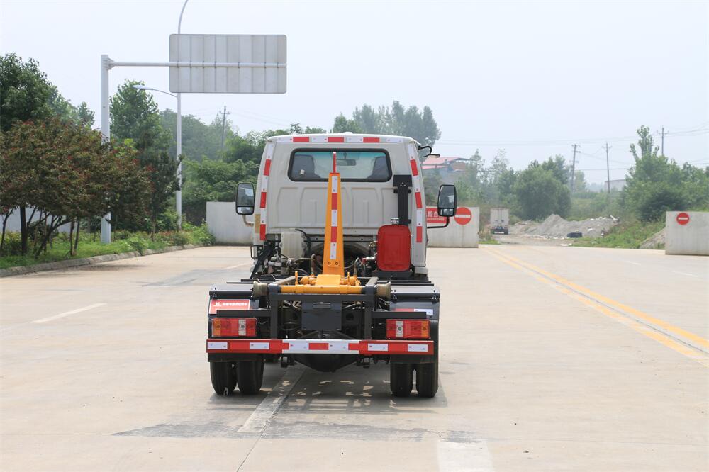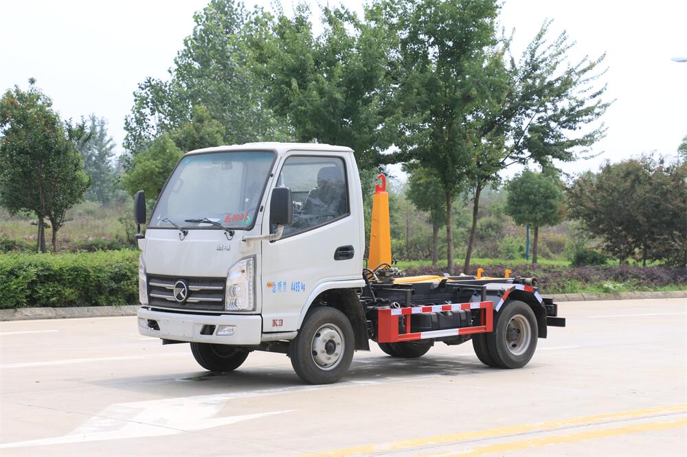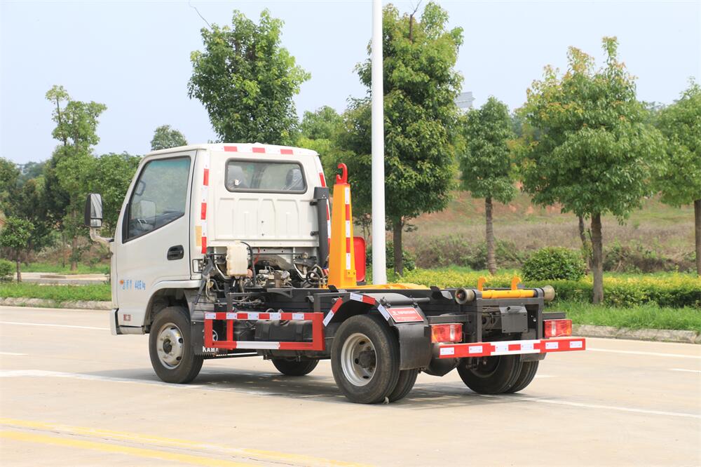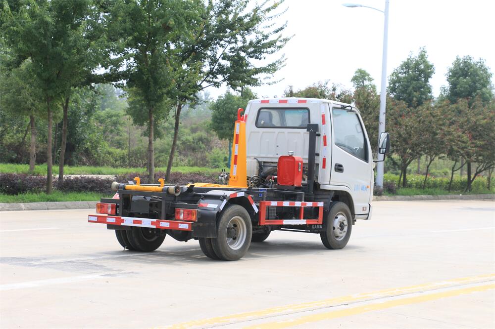 勾臂式垃圾車(車廂可卸式垃圾車)介紹: 車廂可卸式垃圾車又叫拉臂式垃圾車,是一種采用高新設(shè)計(jì)可伸縮的鉤臂,實(shí)現(xiàn)垃圾廂的二次吊裝,自吊上放下,可自行傾倒垃圾的環(huán)衛(wèi)設(shè)備。 拉臂式垃圾車結(jié)構(gòu)簡(jiǎn)單,操作穩(wěn)定方便,裝卸效率高,機(jī)械化程度高,節(jié)省人力。鉤臂垃圾車一車可帶多個(gè)垃圾廂,在裝卸的運(yùn)輸過程中可有效地避免二次污染。 拉臂垃圾車采用高新設(shè)計(jì)可擺動(dòng)的鉤臂,垃圾箱由框架、開啟油缸、滑輪、后門和若干加強(qiáng)框架與鋼板焊接而成。調(diào)換貨廂快捷方便,貨廂上帶蓋(倒垃圾時(shí)可翻開),鉤臂垃圾車?yán)鴰w可選用碳鋼、不銹鋼材質(zhì)、內(nèi)部采取環(huán)氧樹脂防腐處理,改裝部分與原車底盤為可分離式,維修方便且保持了原車的機(jī)動(dòng)性及行駛性能。