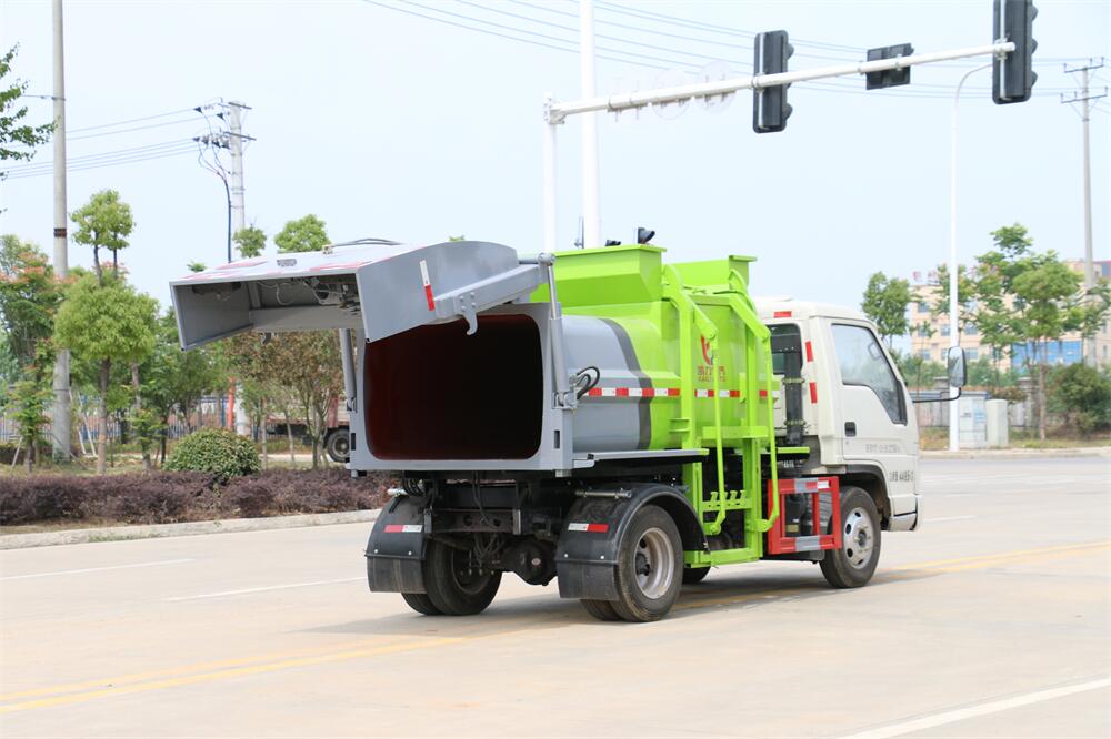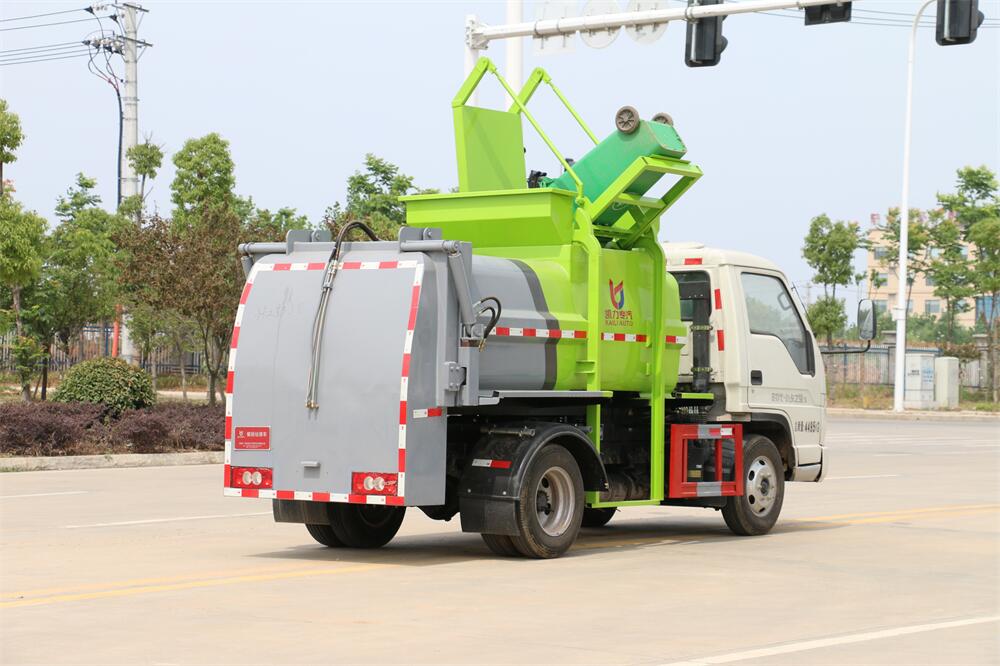 上裝配置:罐體容積4m3,配備120L/240L掛桶提升翻轉(zhuǎn)機構(gòu),液壓系統(tǒng),后蓋液壓鎖緊開啟,罐體可以舉升自卸,尾部帶自流閥;用于運輸液態(tài)垃圾,其特點操作簡單,密封性好,無泄漏,無異味;可選裝固液分離功能,推板擠壓功能,常用于餐館的垃圾轉(zhuǎn)運處理。