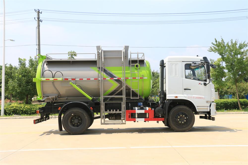 上裝配置:罐體容積10m3,配備120L/240L掛桶提升翻轉(zhuǎn)機構(gòu),液壓系統(tǒng),后蓋液壓鎖緊開啟,罐體可以舉升自卸,尾部帶自流閥;用于運輸液態(tài)垃圾,其特點操作簡單,密封性好,無泄漏,無異味;可選裝固液分離功能,推板擠壓功能,常用于餐館的垃圾轉(zhuǎn)運處理。