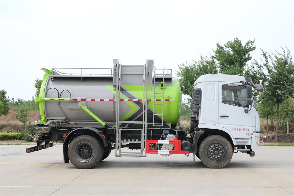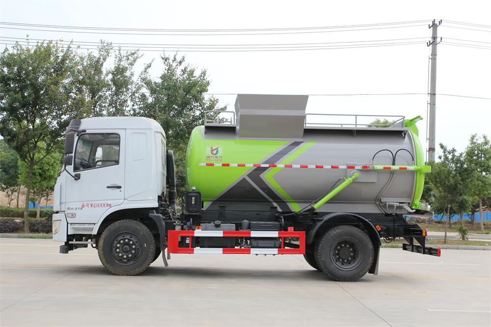 上裝配置:罐體容積10m3,配備120L/240L掛桶提升翻轉(zhuǎn)機(jī)構(gòu),液壓系統(tǒng),后蓋液壓鎖緊開啟,罐體可以舉升自卸,尾部帶自流閥;用于運(yùn)輸液態(tài)垃圾,其特點(diǎn)操作簡單,密封性好,無泄漏,無異味;可選裝固液分離功能,推板擠壓功能,常用于餐館的垃圾轉(zhuǎn)運(yùn)處理。
