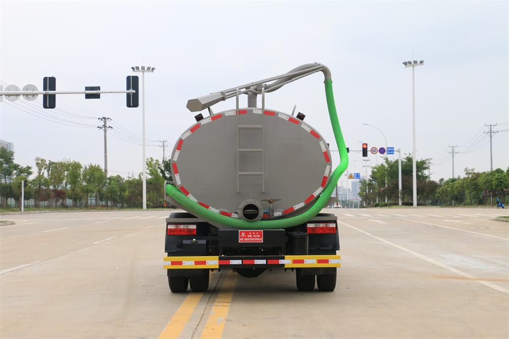 上裝配置:8T真空油泵或者SK-12水循環(huán)泵, 油水分離器 ,防溢閥,視糞管,洗水箱,吊桿座(可270度旋轉(zhuǎn)),尾部一個220排糞口帶駕駛室操作,一根6米吸糞管帶陰陽端快接頭。