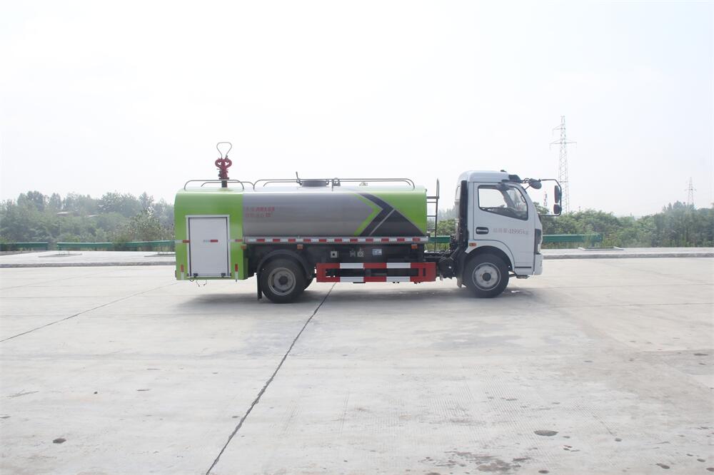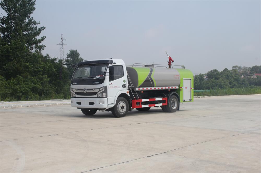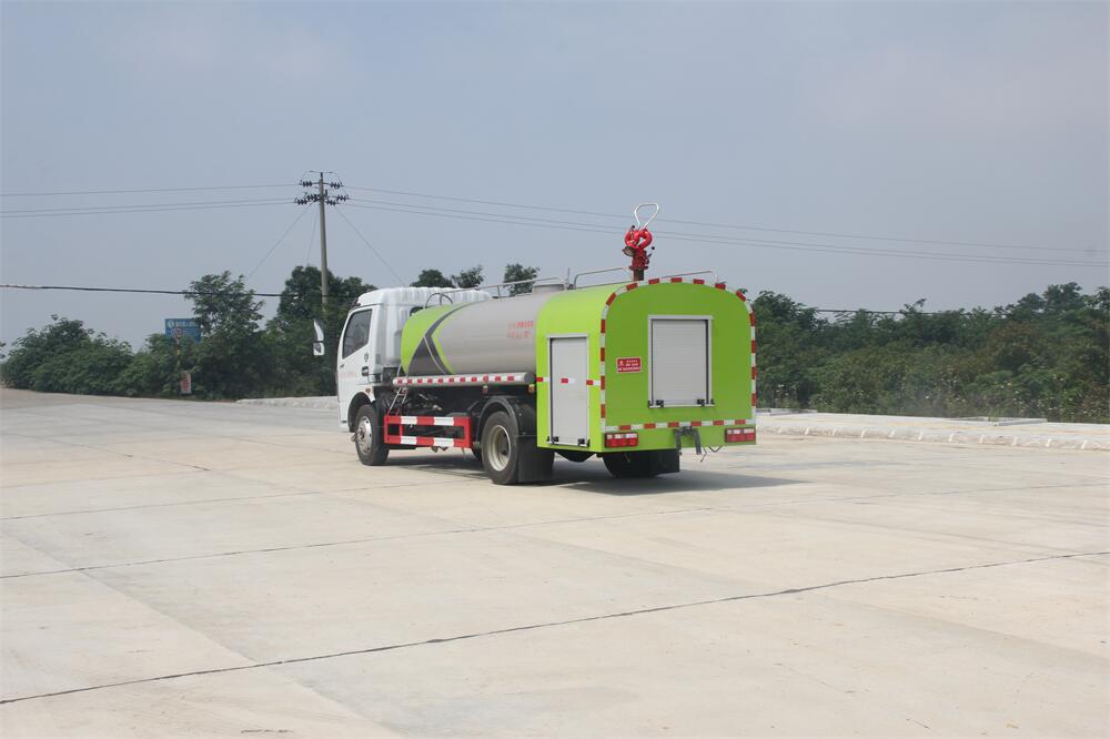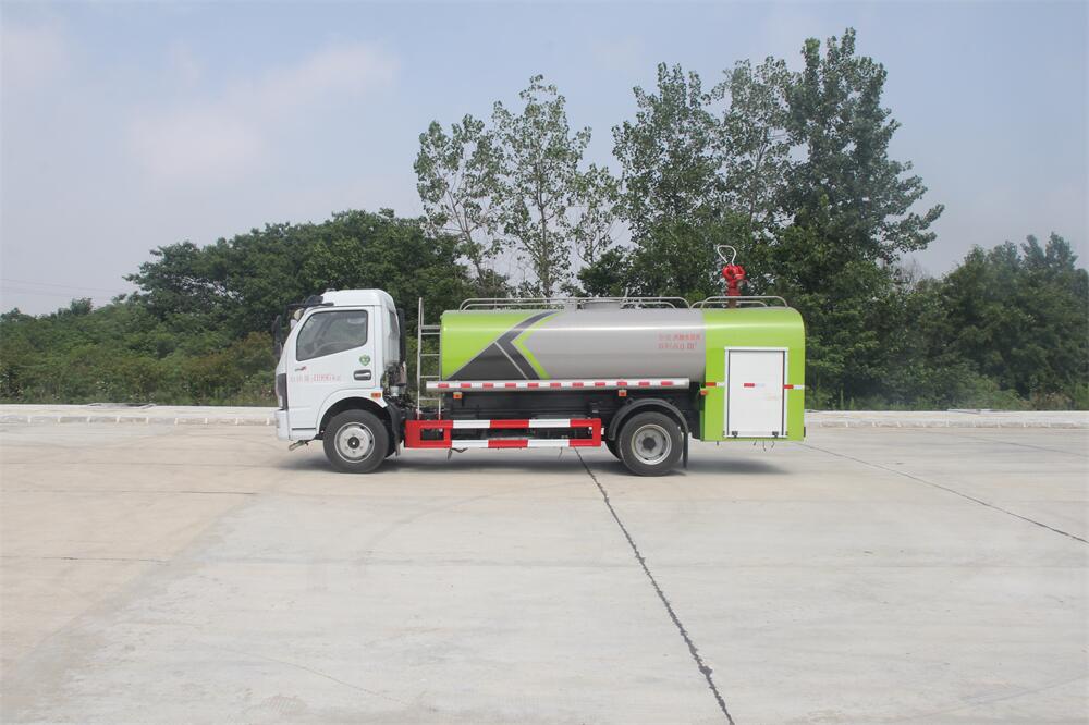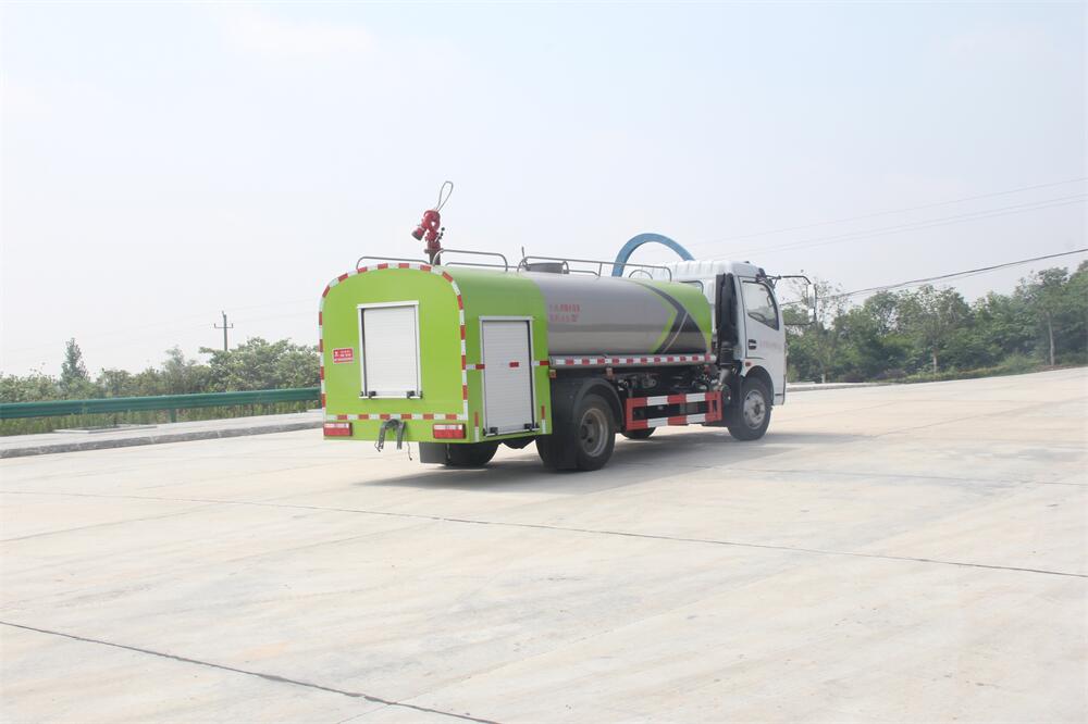 灑水車前裝有鴨形噴嘴或圓頭沖嘴,后面裝有圓柱開灑水噴嘴或蓮蓬頭噴嘴,后部有一工作平臺,裝配有水炮。后部還可裝8個(gè)噴嘴(選裝)。