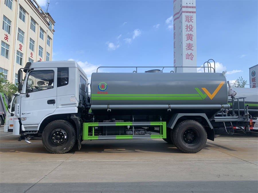 灑水車前裝有鴨形噴嘴或圓頭沖嘴,后面裝有圓柱開灑水噴嘴或蓮蓬頭噴嘴,后部有一工作平臺,裝配有水炮。后部還可裝8個噴嘴(選裝)。
