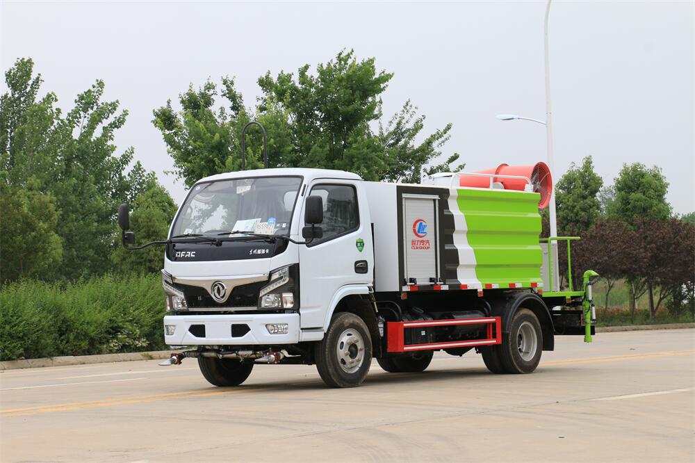 上裝配置:罐體容積為 5-7立方,選配風(fēng)送式霧炮機(jī)組射程30米、40米、50米、60米、80米、100米、120米霧炮,罐體鋼板為4mm碳鋼Q235材質(zhì),罐內(nèi)隔板具有防波作用,以減輕汽車行駛時罐體液體沖擊,罐體及整車外形尺寸按照公告。帶大功率專用灑水泵,泵可自吸自排,整車前沖、后灑、側(cè)噴、帶65消防接口,后平臺配CLW-50、CLW-60、CLW-80、CLW-100、CLW-120型風(fēng)送式霧炮機(jī)組;罐體前封頭配大功率柴油發(fā)電機(jī)組;前封頭帶水位計,后平臺主管路帶1寸澆花接口,后爬梯。帶兩根輸水管及陰陽端。罐體顏色:銀/灰/綠,罐體兩側(cè)噴“多功能抑塵車”字樣,貼反光標(biāo)示。