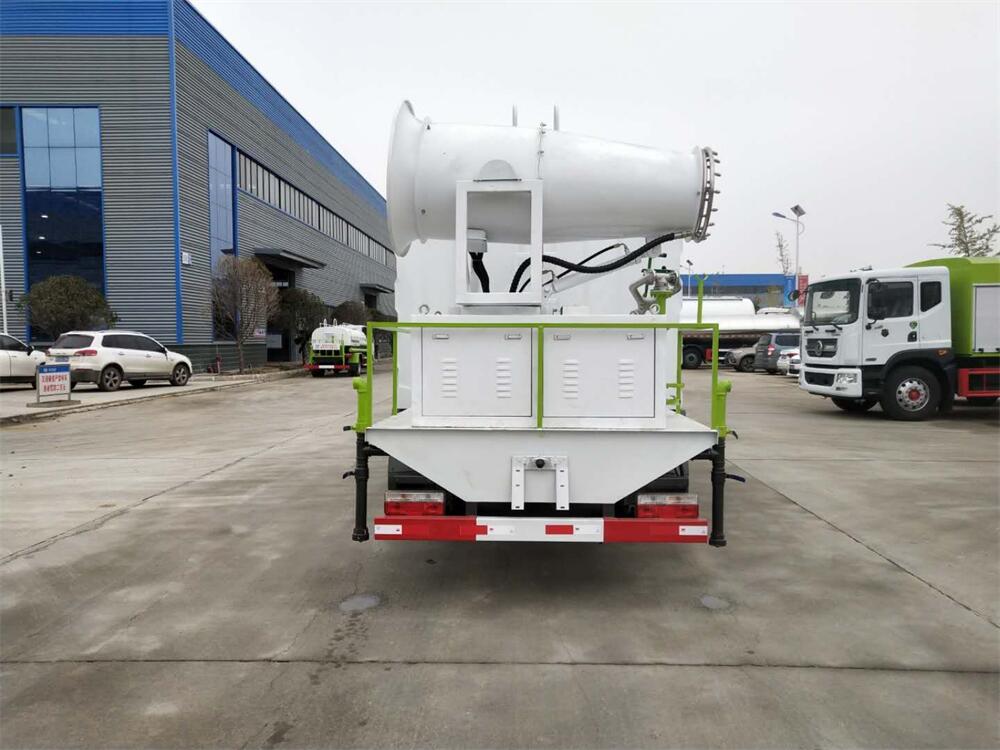 上裝配置:罐體容積為 8立方,選配風(fēng)送式霧炮機(jī)組射程30米、40米、50米、60米、80米、100米、120米霧炮,罐體鋼板為4mm碳鋼Q235材質(zhì),罐內(nèi)隔板具有防波作用,以減輕汽車行駛時(shí)罐體液體沖擊,罐體及整車外形尺寸按照公告。帶大功率專用灑水泵,泵可自吸自排,整車前沖、后灑、側(cè)噴、帶65消防接口,后平臺(tái)配CLW-50、CLW-60、CLW-80、CLW-100、CLW-120型風(fēng)送式霧炮機(jī)組;罐體前封頭配大功率柴油發(fā)電機(jī)組;前封頭帶水位計(jì),后平臺(tái)主管路帶1寸澆花接口,后爬梯。帶兩根輸水管及陰陽(yáng)端。罐體顏色:銀/灰/綠,罐體兩側(cè)噴“多功能抑塵車”字樣,貼反光標(biāo)示。