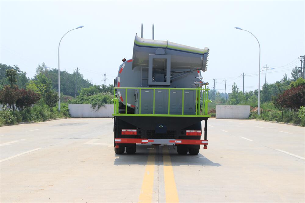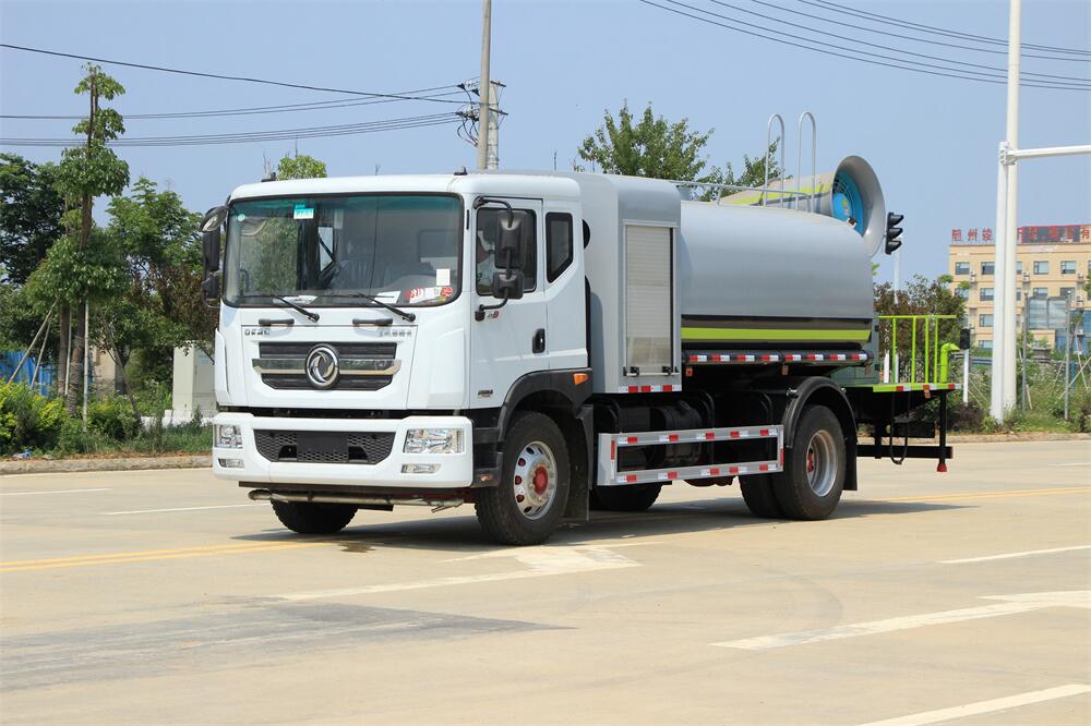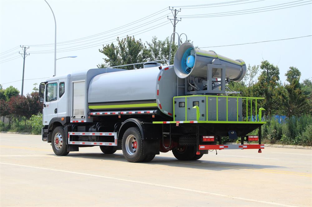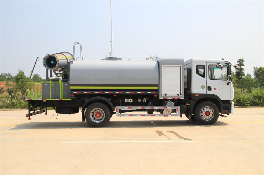 上裝配置:罐體容積為 12立方,選配風(fēng)送式霧炮機(jī)組射程30米、40米、50米、60米、80米、100米、120米霧炮,罐體鋼板為4mm碳鋼Q235材質(zhì),罐內(nèi)隔板具有防波作用,以減輕汽車行駛時(shí)罐體液體沖擊,罐體及整車外形尺寸按照公告。帶大功率專用灑水泵,泵可自吸自排,整車前沖、后灑、側(cè)噴、帶65消防接口,后平臺配CLW-50、CLW-60、CLW-80、CLW-100、CLW-120型風(fēng)送式霧炮機(jī)組;罐體前封頭配大功率柴油發(fā)電機(jī)組;前封頭帶水位計(jì),后平臺主管路帶1寸澆花接口,后爬梯。帶兩根輸水管及陰陽端。罐體顏色:銀/灰/綠,罐體兩側(cè)噴“多功能抑塵車”字樣,貼反光標(biāo)示。