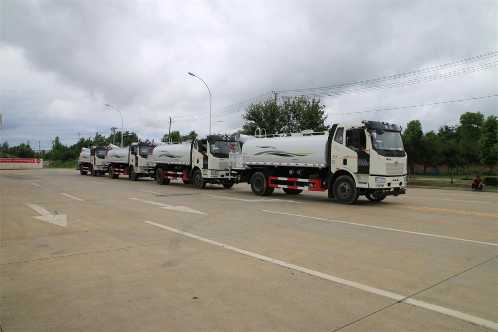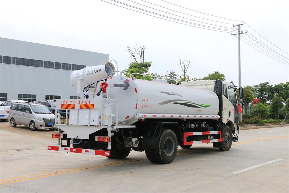 上裝配置:罐體容積 15立方,風送式霧炮機組30米,40米選擇,罐體采用國標Q235碳鋼材質,罐體厚度4MM,前后封頭5MM加厚型,罐體內雙層隔板具有防波蕩作用,以減輕汽車行駛時罐內液體沖擊;灑水車整車及外形尺寸嚴格按照**機動車公告制作而成;裝配大功率專用灑水泵,前沖、后灑、側噴、后平臺帶綠化灑水炮,灑水炮可全方位旋轉,可連續調成直沖狀、大雨、小雨、毛毛雨;配消防接口,自流閥,濾網,帶自吸自排功能。前封頭帶水位計,后平臺主管路帶1寸澆花接口,后爬梯,帶1個消防接頭,帶1個自流閥,1個過濾裝置,其余標配。
