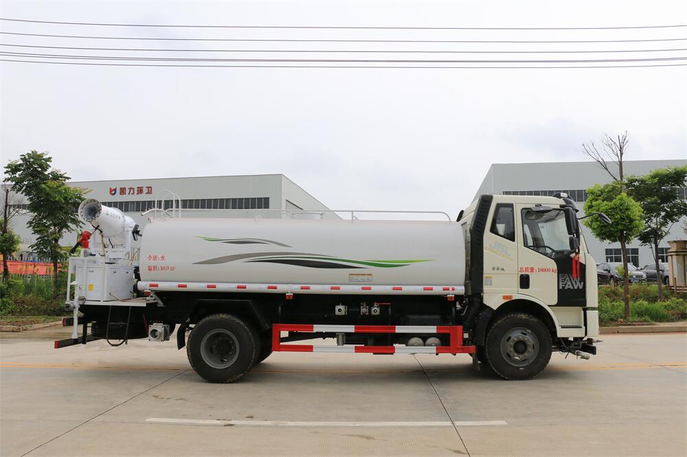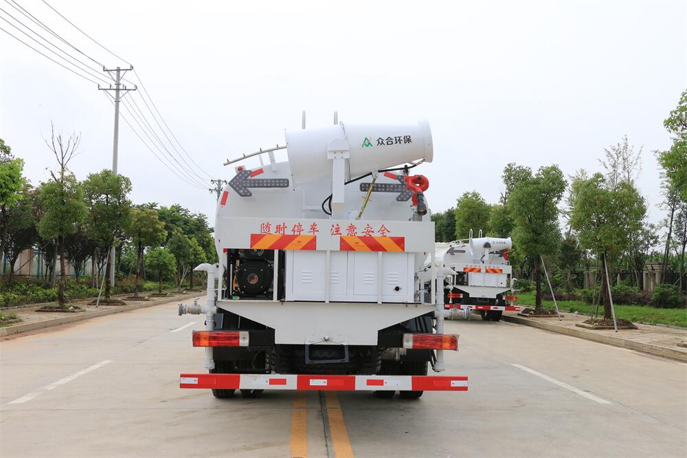 主要由發動機帶動變速箱,變速箱上安裝的取力器帶動灑水泵,灑水泵產生動力,將罐體內部的液體通過管網噴灑出去。工作范圍:自吸高度:≥7m,灑水寬度:≥14m,**大射程:≥28m;可調節成柱狀,射程≥28m;也可調節成霧狀,射程≥5m。