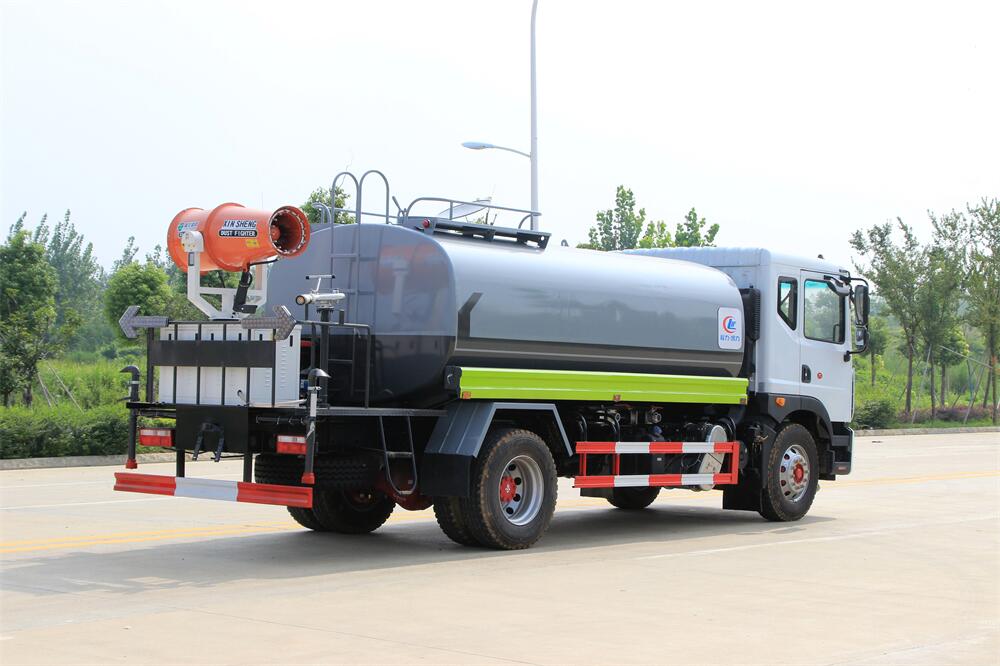 主要由發動機帶動變速箱,變速箱上安裝的取力器帶動灑水泵,灑水泵產生動力,將罐體內部的液體通過管網噴灑出去。工作范圍:自吸高度:≥7m,灑水寬度:≥14m,**大射程:≥28m;可調節成柱狀,射程≥28m;也可調節成霧狀,射程≥5m。