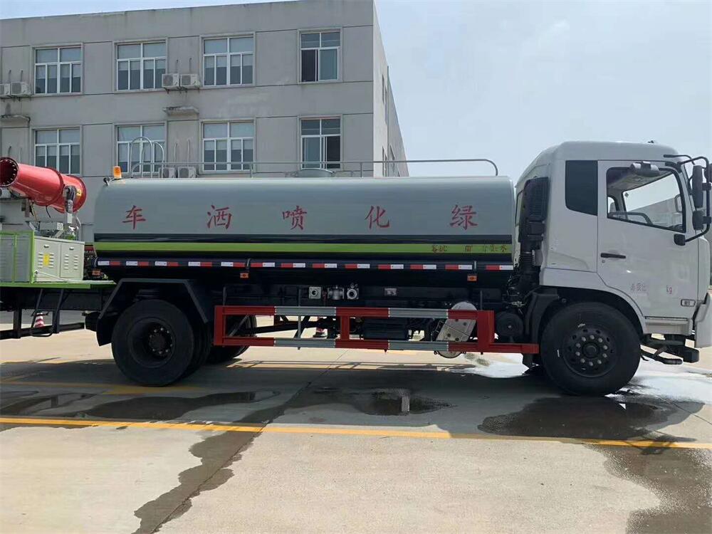 上裝配置:罐體容積 12-15立方,風送式霧炮機組30米,40米選擇,罐體采用國標Q235碳鋼材質,罐體厚度4MM,前后封頭5MM加厚型,罐體內雙層隔板具有防波蕩作用,以減輕汽車行駛時罐內液體沖擊;灑水車整車及外形尺寸嚴格按照**機動車公告制作而成;裝配大功率專用灑水泵,前沖、后灑、側噴、后平臺帶綠化灑水炮,灑水炮可全方位旋轉,可連續(xù)調成直沖狀、大雨、小雨、毛毛雨;配消防接口,自流閥,濾網(wǎng),帶自吸自排功能。前封頭帶水位計,后平臺主管路帶1寸澆花接口,后爬梯,帶1個消防接頭,帶1個自流閥,1個過濾裝置,其余標配。