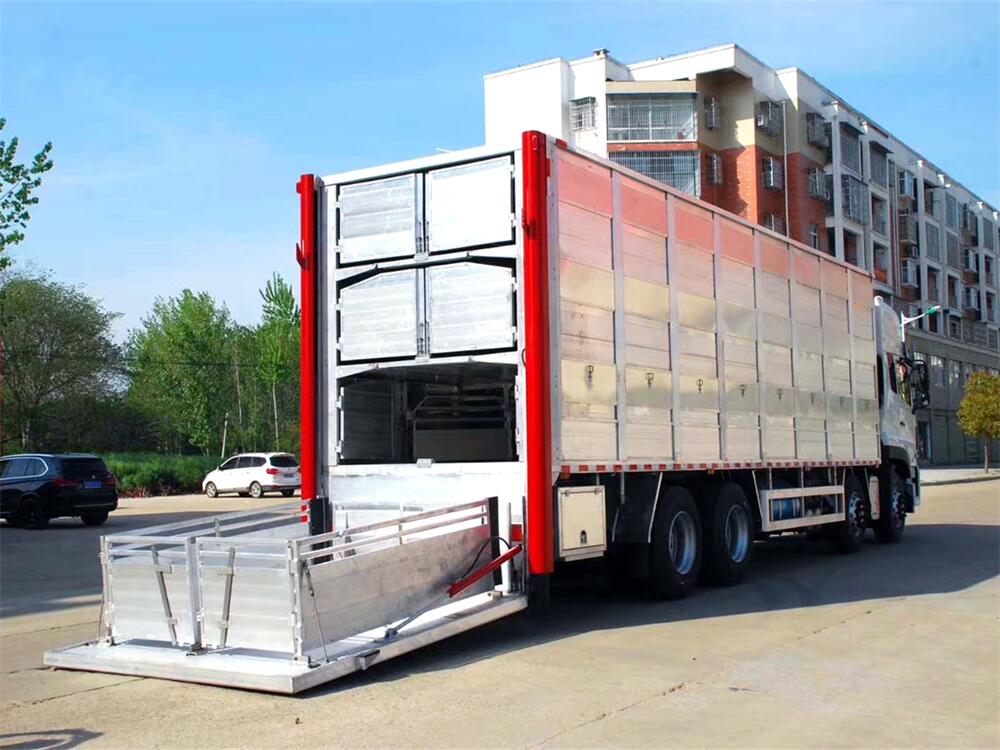 產品優勢:輕量化工藝,部局更佳合理,廂體完全才用全鋁合金材質,耐腐蝕,不易氧化,使用壽命更長,承載能力更**。電控液壓**,操作更快捷。恒溫通風系統,喂食系統,飲水系統保證運輸中豬的成活率。