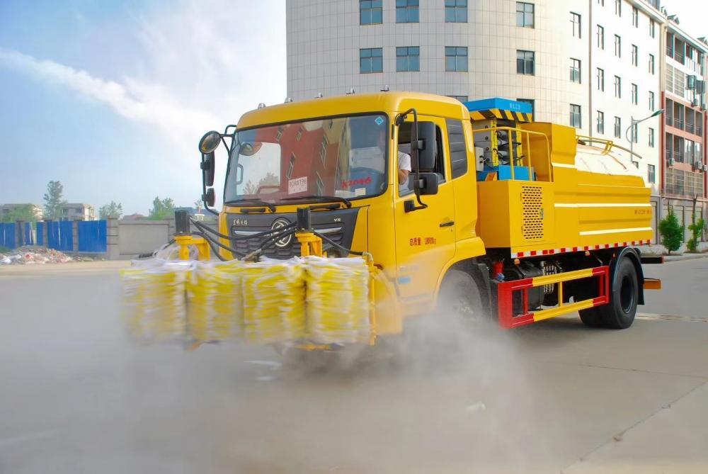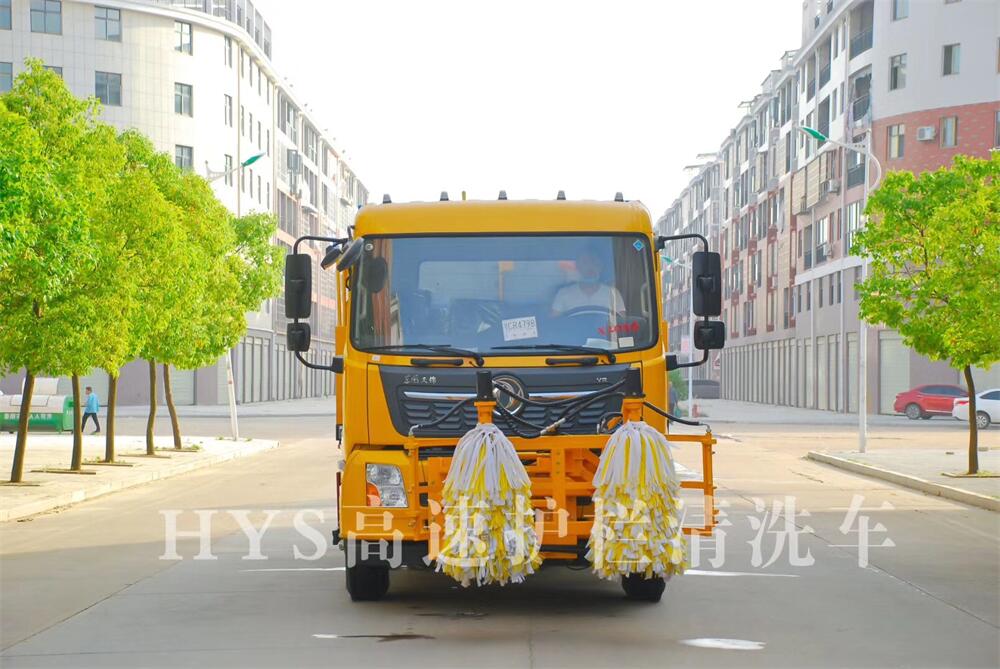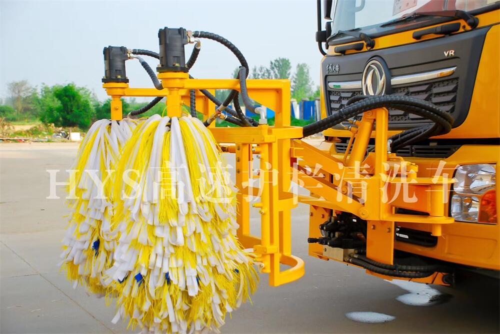 在行駛過程中,噴嘴向護欄進行低壓噴水沖洗護欄,然后四個馬達帶著滾刷旋轉(zhuǎn)并夾著護欄對護欄進行滾動清洗作業(yè)。
