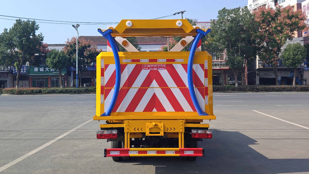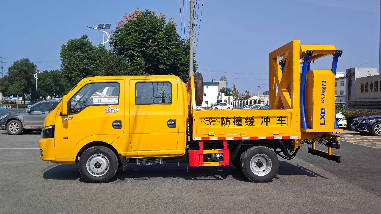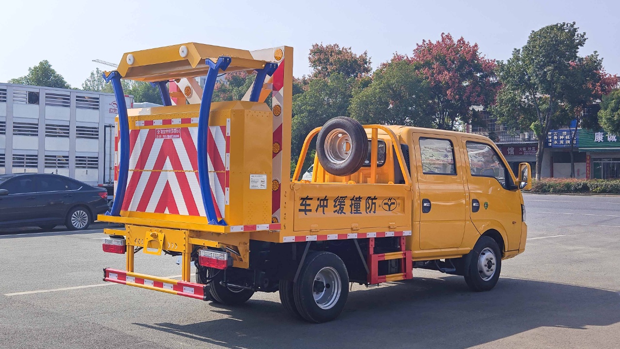 上裝配置:采用Q235國標邊板,底板花紋板,不銹鋼合頁,箱體后部防撞緩沖模塊包采用暢行達70K防撞緩沖模塊,防撞緩沖吸能模塊主要由車載防撞緩沖墊和導向標志架組成,充當施工作業車輛后方的緩沖衛士。