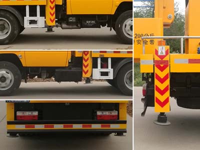 配置 后伸:300mm;隨底盤選裝駕駛室;選裝吊鉤;側面防護及后下部防護裝置材料材質:Q235,連接方式:焊接加螺栓連接;后下部防護裝置斷面尺寸(寬贅?:30?00(mm),離地高度:350mm;ABS廠家及型號:襄陽東風隆誠機械有限責任公司/ABS/ASR-24V-4S/4M;主要專用裝置為折疊臂,用于搶修電力、通訊、路燈等高空作業.